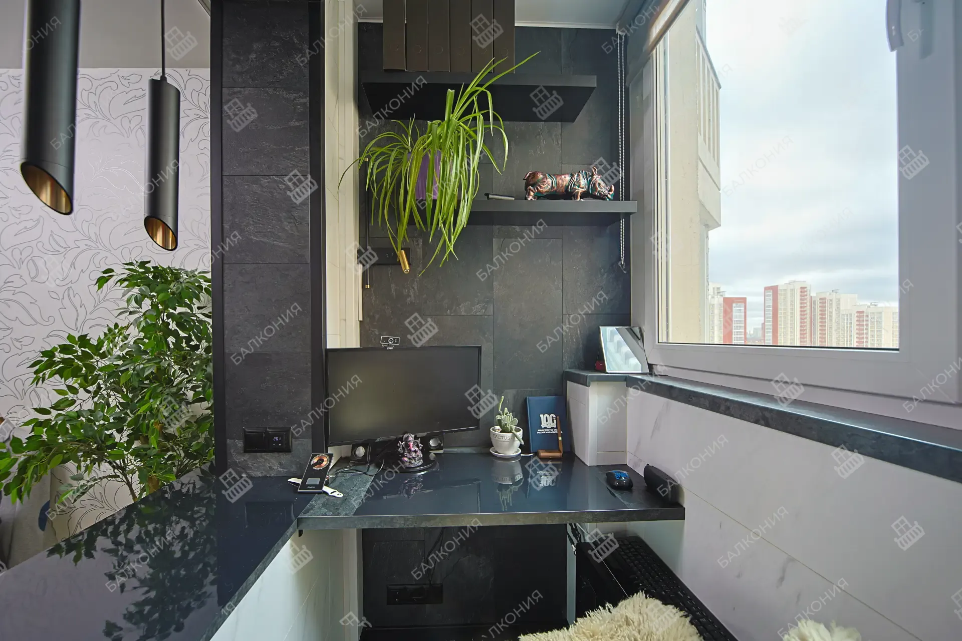 Как обшить искусственным камнем П-образный балкон с объединением
