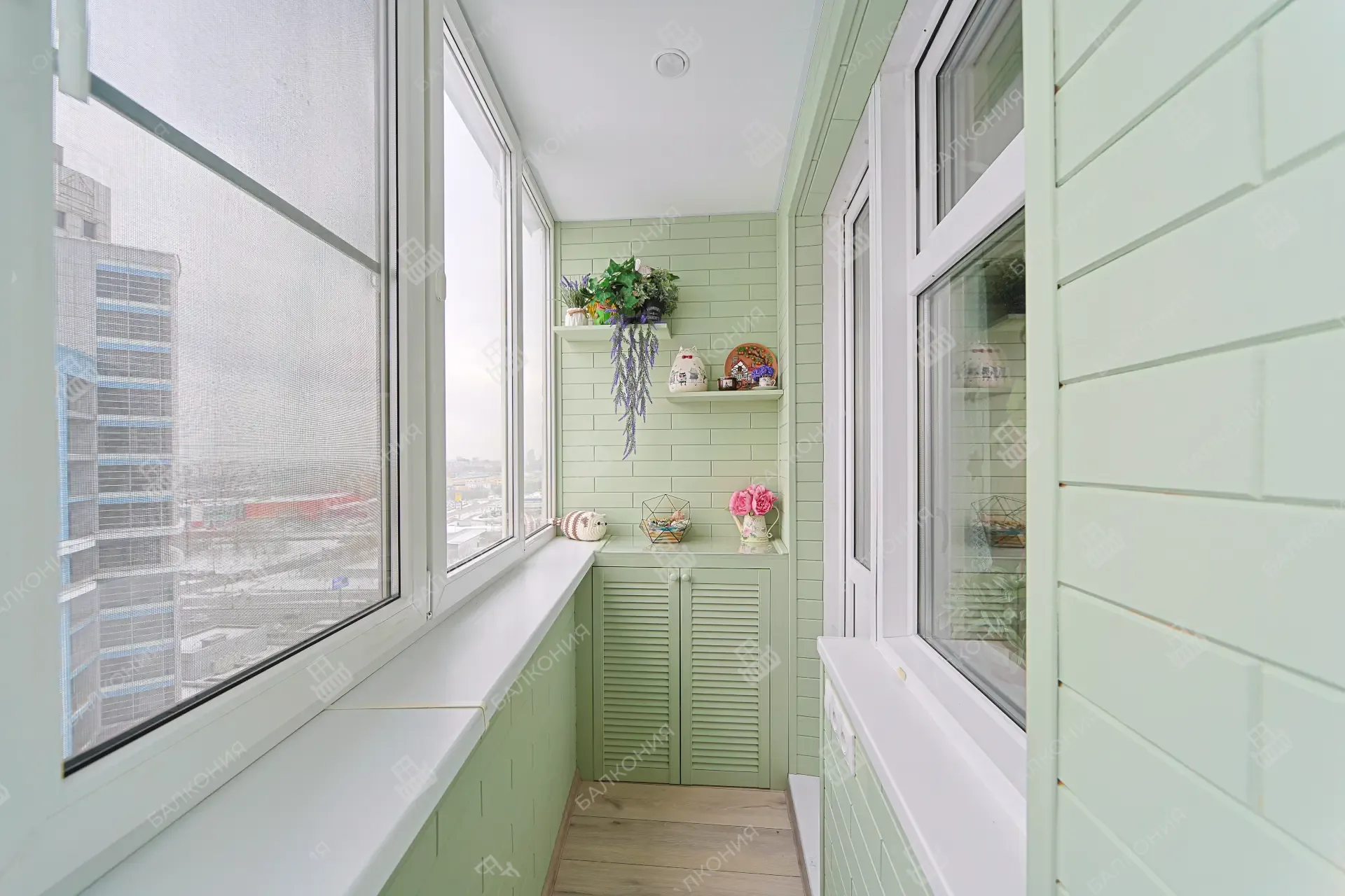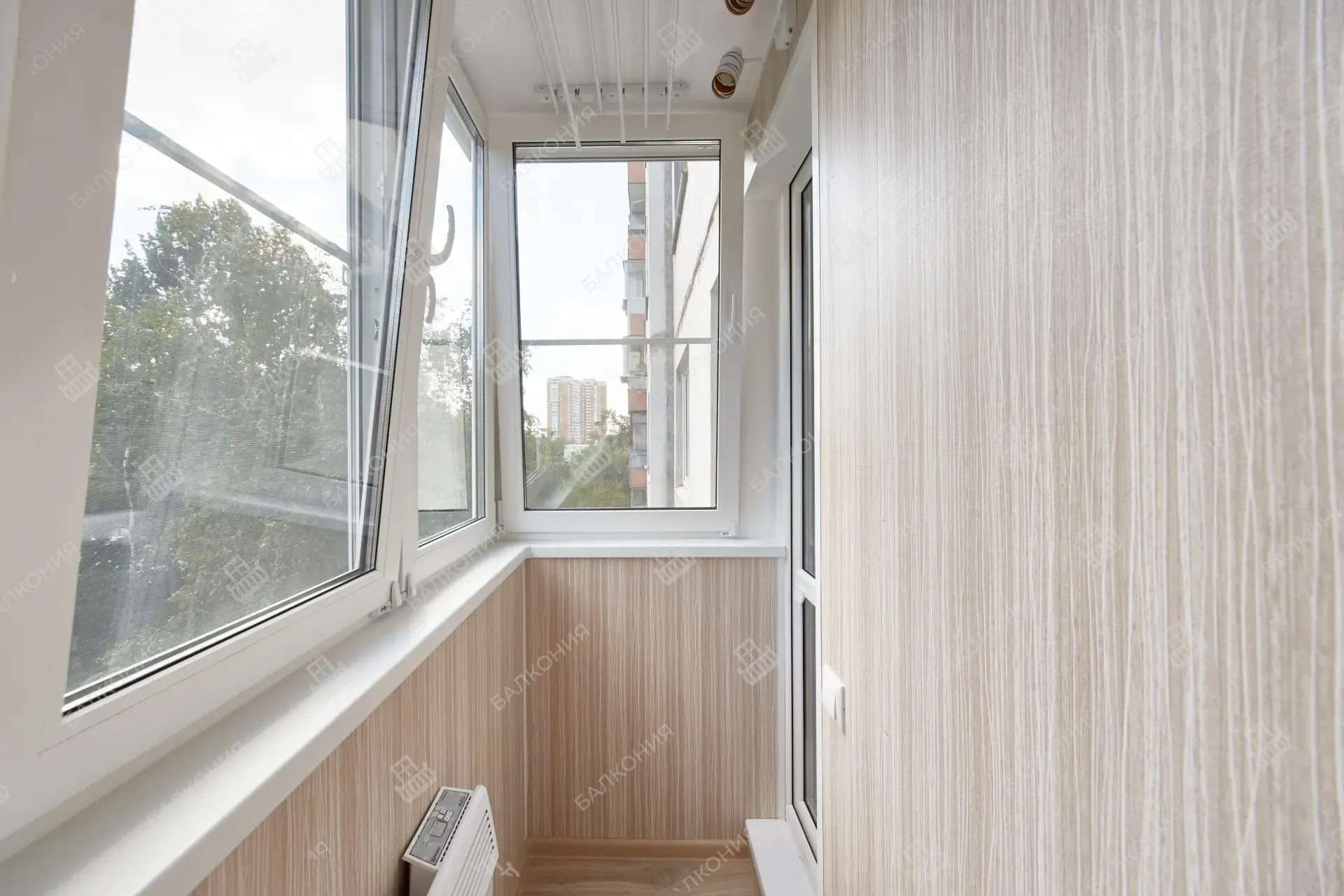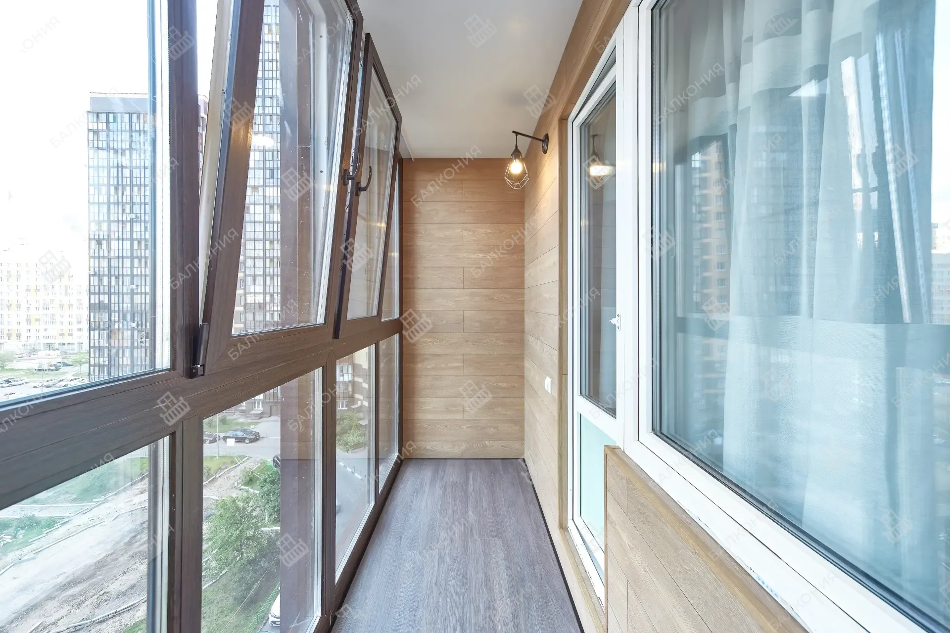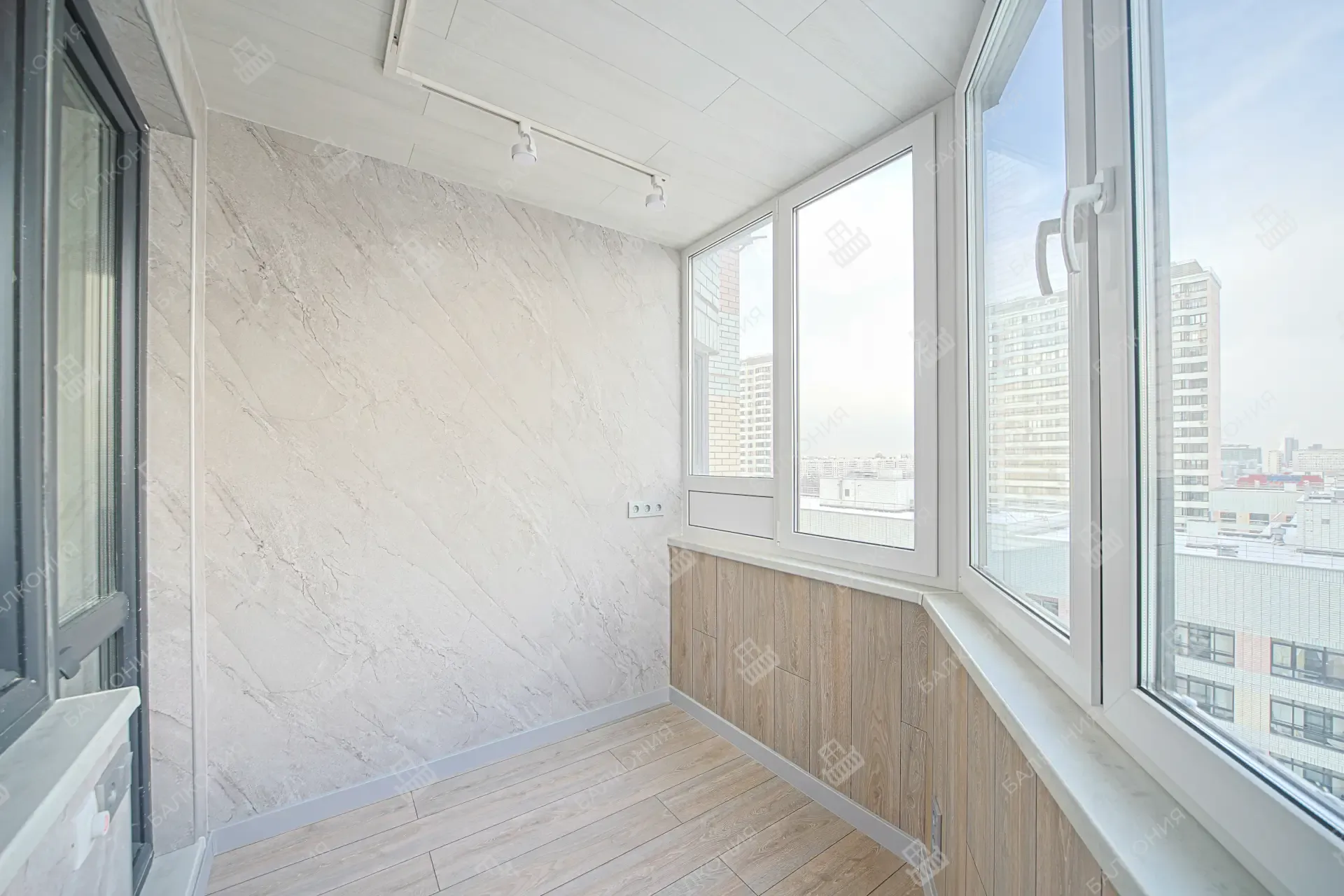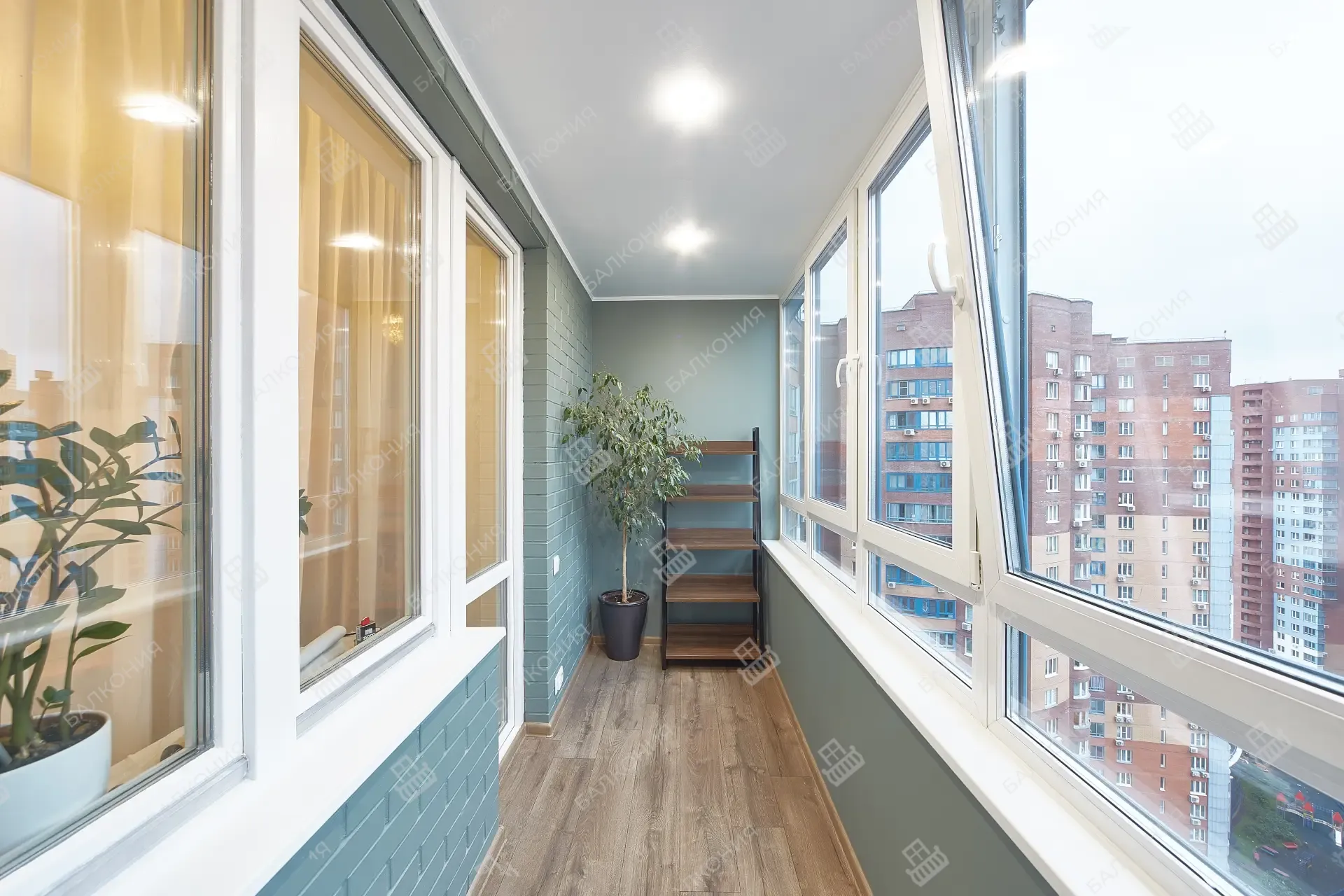 Для балконов и лоджий предлагаем два основных варианта — холодное и тёплое остекление. Холодное, выполненное на лёгких алюминиевых раздвижных системах, почти не нагружает плиту и защищает от ветра и осадков. Тёплое остекление со стеклопакетами и утеплением превращает пространство в полноценную комнату с комфортной температурой круглый год.