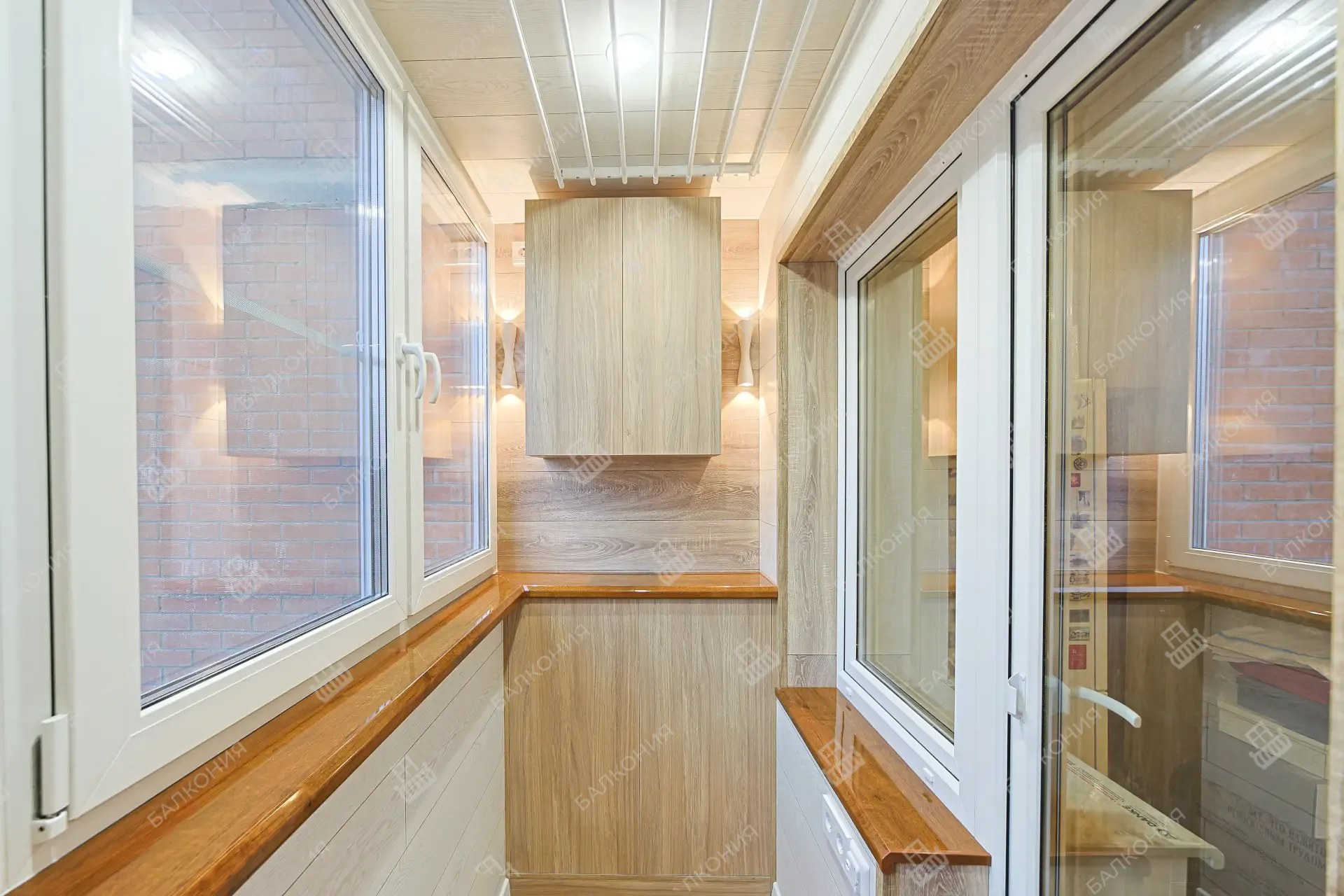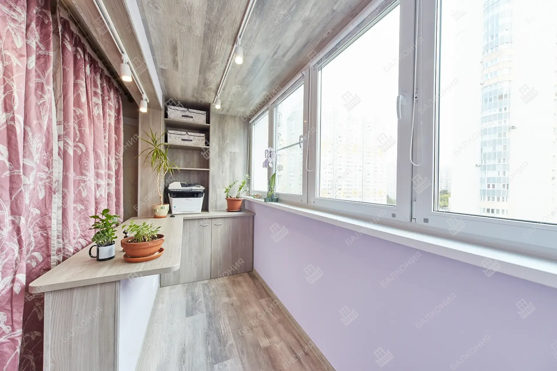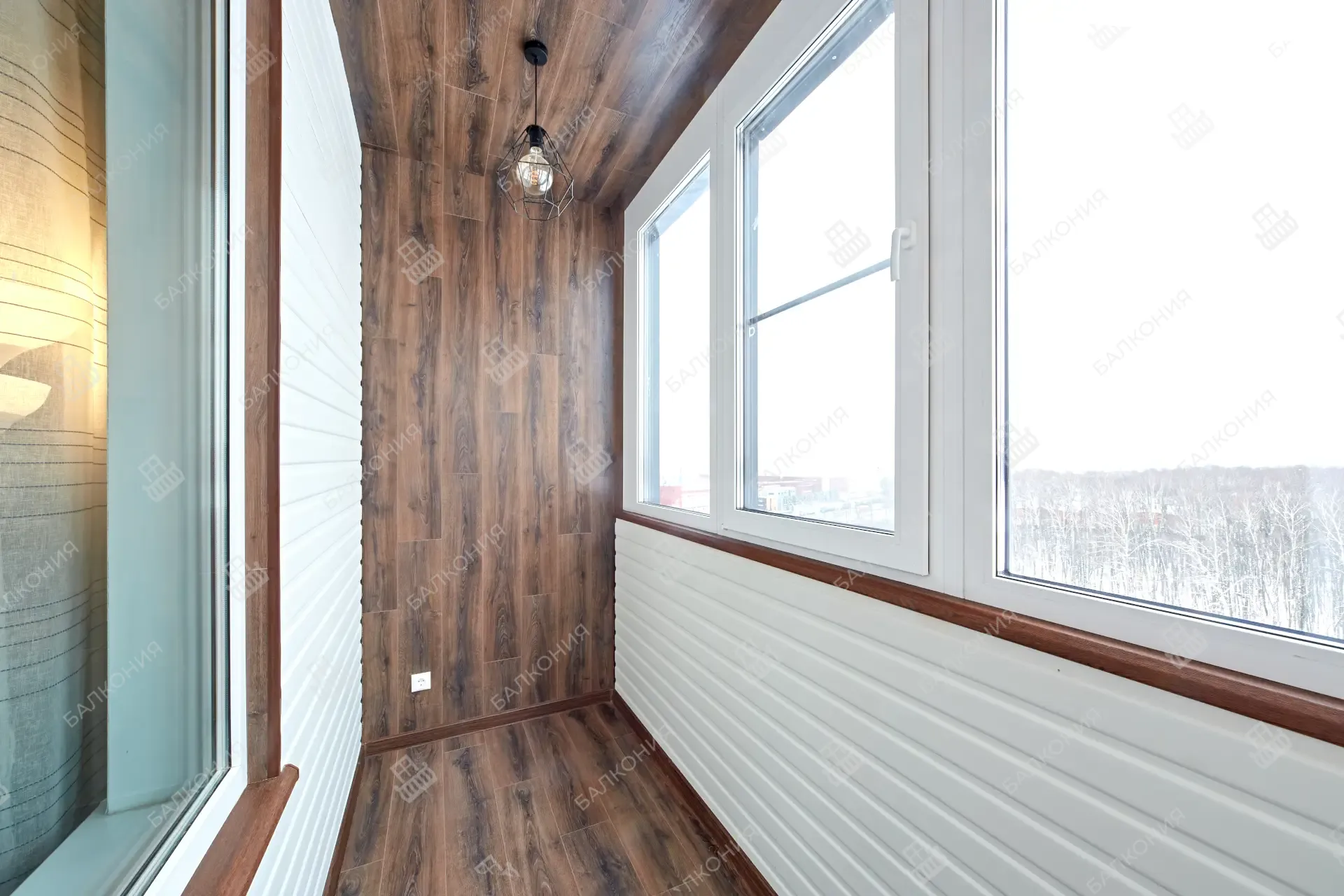 Для внутреннего оформления используем ПВХ-панели, вагонку или ламинат; потолки делаем натяжными или пластиковыми. По желанию клиента выводим электрику, устанавливаем освещение и тёплый пол. Снаружи обшиваем балкон профлистом или сайдингом, подбирая цвет под фасад.