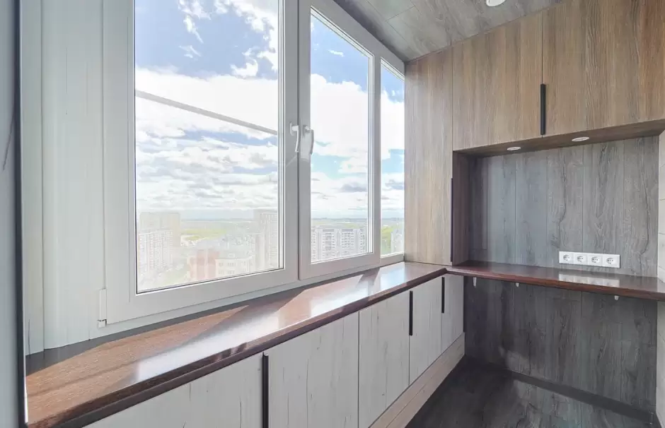Лоджия “Сапожок” — это особый тип планировки, где пространство имеет вытянутую форму с изгибом. На первый взгляд такая геометрия кажется неудобной, но при грамотном подходе она превращается в настоящую находку. Именно здесь можно организовать компактный кабинет для работы и одновременно — удобное место хранения. Благодаря своей форме “Сапожок” прекрасно подходит для зонирования. В узкой части можно разместить систему шкафов или стеллажей для хранения вещей, сезонной одежды или бытовых мелочей. А более широкую часть лоджии стоит оборудовать под рабочее место: установить стол, полки, эргономичное кресло и освещение. В итоге получается функциональное пространство, которое разгружает квартиру и добавляет комфорта в повседневную жизнь.
